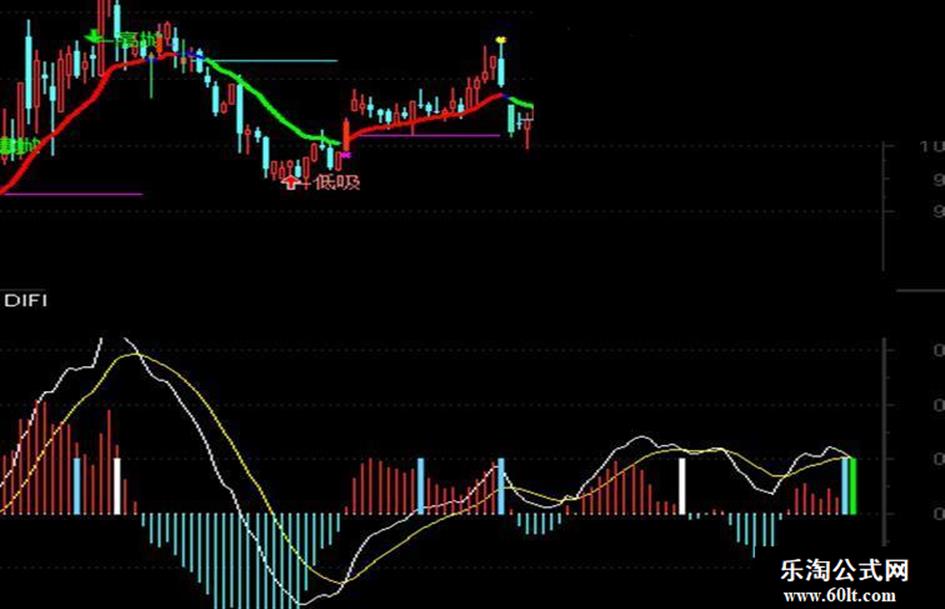 MACD顶背:IF(D1>0,0.1,0),COLOR00FF00,POINTDOT;