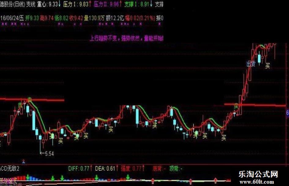 ,'上行趋势不变,强势依然,量能开始转弱,注意风险'),COLORFF00FF ;