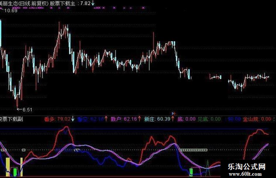 看多:IF((趋势>散),趋势,散),COLOR0000FF,LINETHICK2;