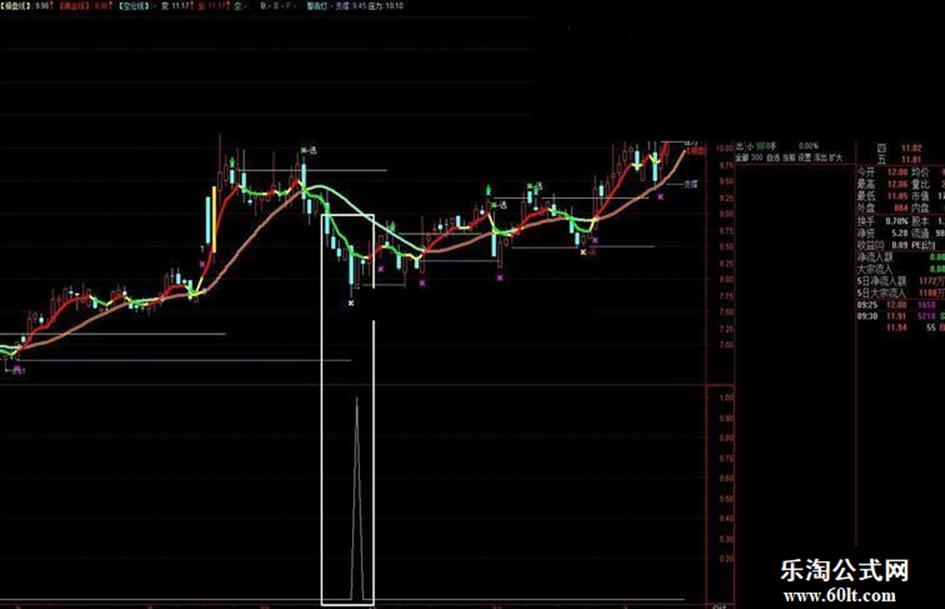 出击:=CROSS(CLOSE,REF(EMA(DMA((((HIGH+LOW)+(CLOSE*2))/4.15),0.9),3),1))AND JTB<55;
