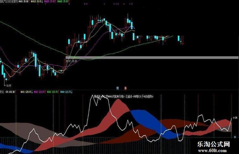 DRAWTEXT_FIX(1,0.40,0.00,0,'黄虚线--CR上穿MA1(可能有行情);红虚线--CR同时大于4线(强势);'),COLORWHITE;