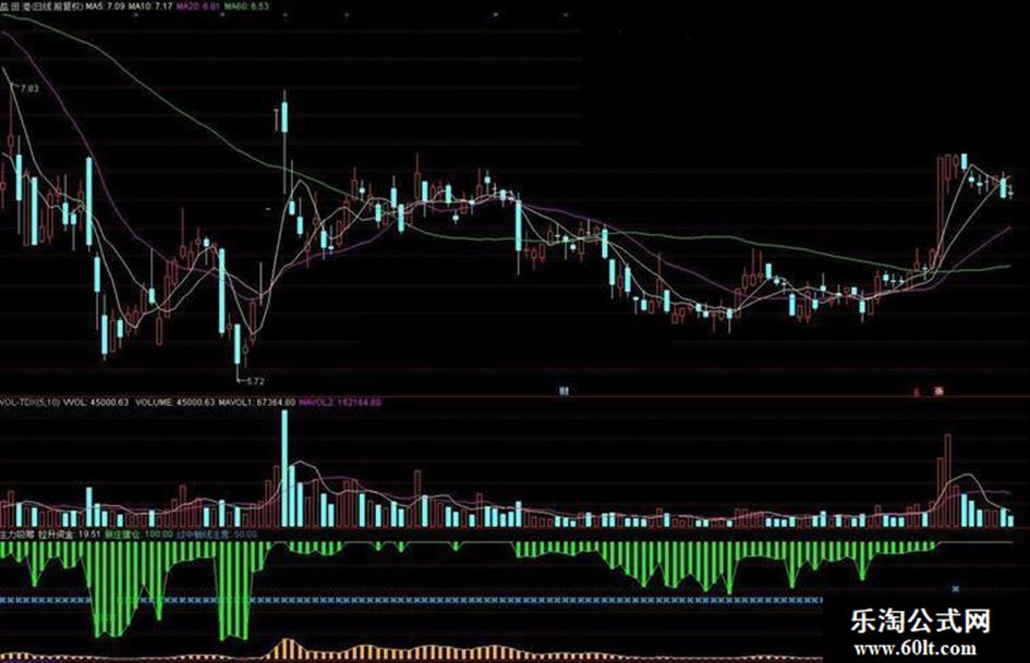 DRAWTEXT(CROSS(VARD,0.5) AND COUNT(VARD=1,10)=1,70,'赚钱我走啦!'),,COLORGREEN ;