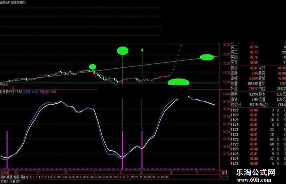出击飞龙:IF(C>O AND REF(深坑 ,1)=20 AND REF(RSI,1)<20,60,0),COLORRED,LINETHICK2;