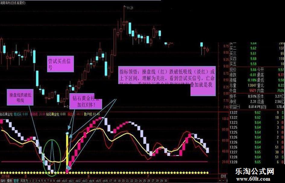 钻石黄金柱:IF(CROSS(出击,0.01),72,0),STICK,COLORYELLOW,LINETHICK9;