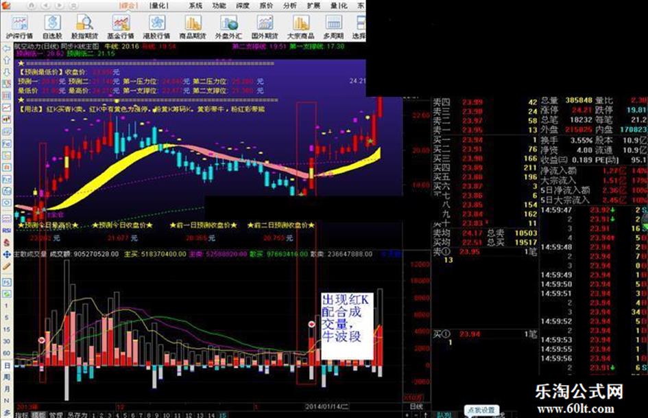 DRAWTEXT_FIX(CURRBARSCOUNT=1,0.01,0.25,0,'【用法】 红K买青K卖。红K中有黄色为涨停。粉黄K筹码K。黄彩带牛,
