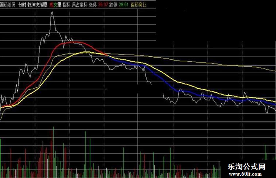 卖信号:=REF(操盘线,1)>=REF(乾坤线,1) AND 操盘线<乾坤线;