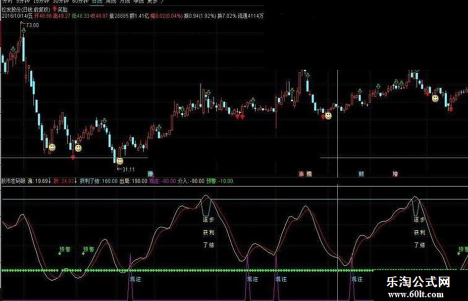 DRAWTEXT(涨>160 AND REF(涨,1)<160,80,'获 利'),COLORYELLOW;