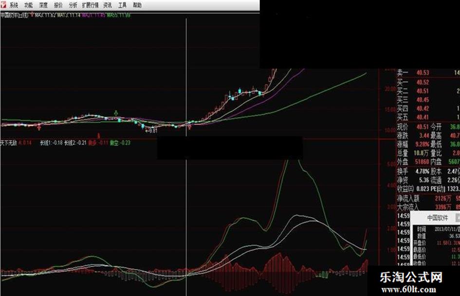 用法是:红线从绿上上出来,赚大钱的机会来了,简单说变双线买入赚线,变单绿线无条件走人,大家可以看到,没有未来,极为准确,是极品中的极品,按这个副图操作,能不赚钱真的很难