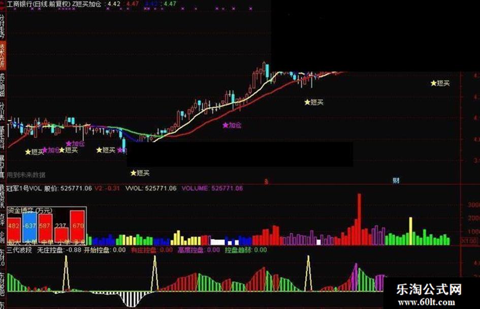 有庄控盘:IF(控盘>REF(控盘,1) AND 控盘>0,控盘,0),COLORRED,LINETHICK1;
