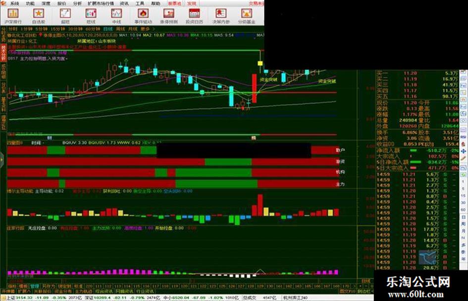 通达信【筹码主力监测】副图指标资金...