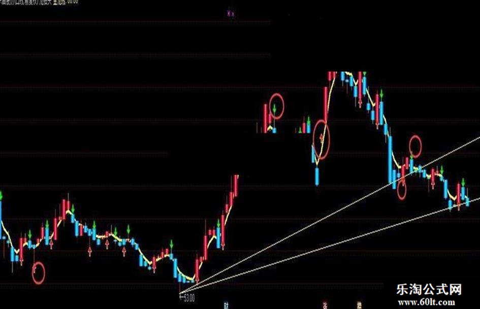 用法说明:做股票就是做上升趋势的票,只有这样才能有钱赚,赚大钱。本主图就是要告诉你,买点在金龙线以上才是最佳买点,跌破金龙线要立马出局。也可以理解为:红K线柱子持股,蓝K线柱子持币。当然,要防止庄家洗盘洗出局,须结合副图操作,不跌破白线不出局,以赚取大波利润。此指标是对龙年主图的进一步优化,直观美观,实战性更强。