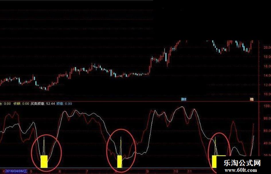 这是个预测底部的指标,收银台也可看做黄金坑,股价经过一段下跌后在反弹区间形成一个坑,可以在低位寻找买入点.两个脉冲信号是到底信号,准确率非常高的指标