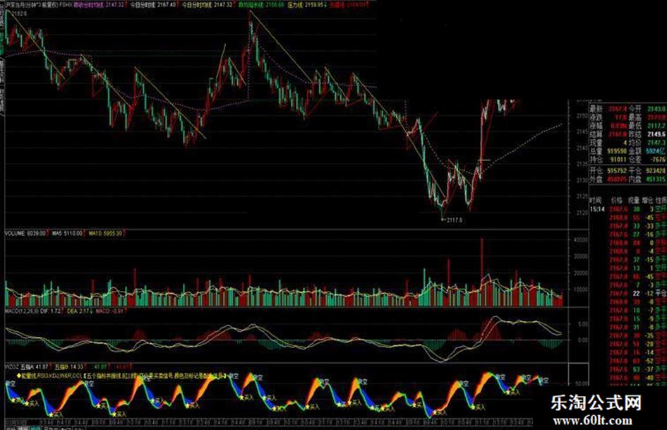 喜欢在K线图上利用分时t+0操作的同学有福了,本人天天使用的原创K线分时主图,证券、期货、外汇、黄金、原油全适用。并且适用于不同分钟周期,可以自行调节。尤其是喜欢做股指的同学,利用分时图和分时均价线以及高低点压力,短线操作非常方便,再也不要切换到分时图做来回切换了。操盘精要:短线把握三日内分时高低点压力支撑,切记贪婪,期指机会多多,每日都有多空机会,切记频繁操作!核心提示:期指短线偏离分时均价线触及前两日分时均价线高低点就是平仓出局休息之时。谁都想多空大小都吃,但是你能吃到的哪怕只是一小部分足以,只要天天有得吃。具体买卖细节很简单,主图结合附图macd,kdj背离。坛里有个五指共振真的很好用,我适当修改加入了做空信号,本帖如果承蒙坛友厚爱加精则发本人改良版五指共振 源码。K线分时主图指标加密无任何使用限制。