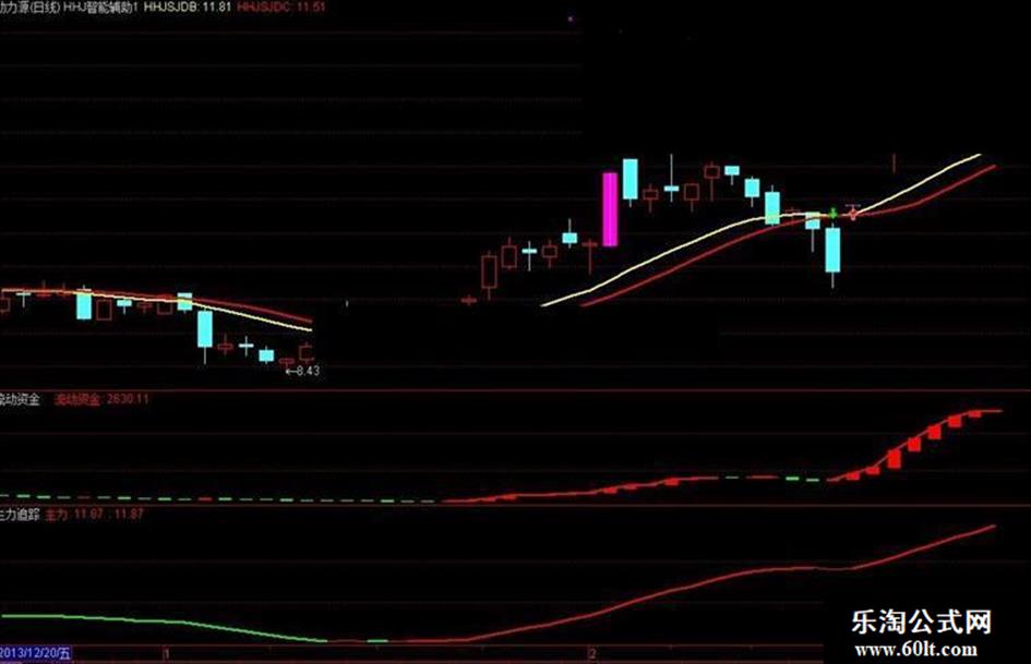 主力追踪顾名思义:就是主力的加仓趋势,这里强调的是个趋势。此线如出现红色,即主力是持续加仓中(红线与0线的夹角越大越好,30度角以上最佳),红线趋势变平,开始勾头向下变绿,就是主力资金在持续流出,须及时止损清仓。 流动资金指标:这个股票公式可以观察一天流动资金是往好还是往坏,红色柱体,资金持续流入;反之,绿色柱体,持续流出。最好结合支撑位和压力位来判断买点和卖点,最后本人总结一句话:“红肥绿瘦” 因为股价的上升必须有资金和量的配合,所以大家一定要好好利用这个参数。