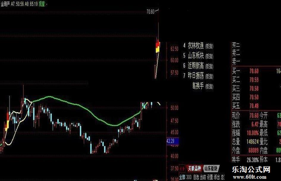 观望:IF(A7=A9,A7,DRAWNULL),COLORGREEN,LINETHICK2;