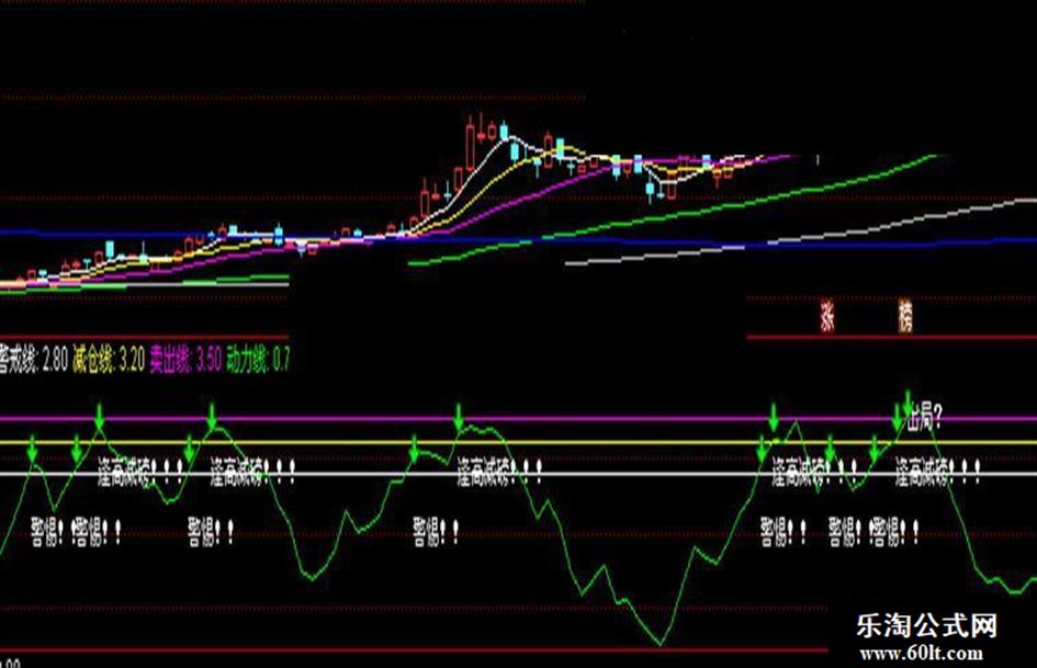DRAWTEXT(CROSS(动力线,减仓线),2.8,'逢高减磅!!! '), ,;