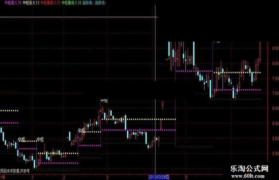 中枢低:PLOYLINE(DISP=2,REF(ZSG,BARSLAST(TJ8))),COLORYELLOW,POINTDOT,LINETHICK4;