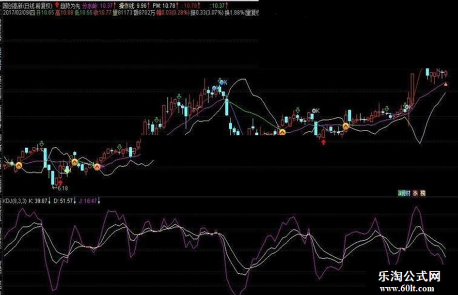 趋势主图 一目了然 看图中上面两条线的走向跟颜色变化 最上面的PM线为红色持股 变色减仓,中间线变色或被跌破清仓持币。