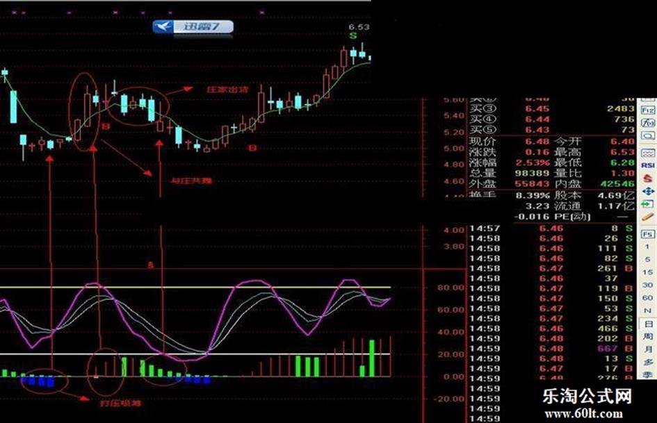 打压吸筹:IF(现价<REF(现价,1) AND 现价<0,现价,0)COLORBLUE,NODRAW;