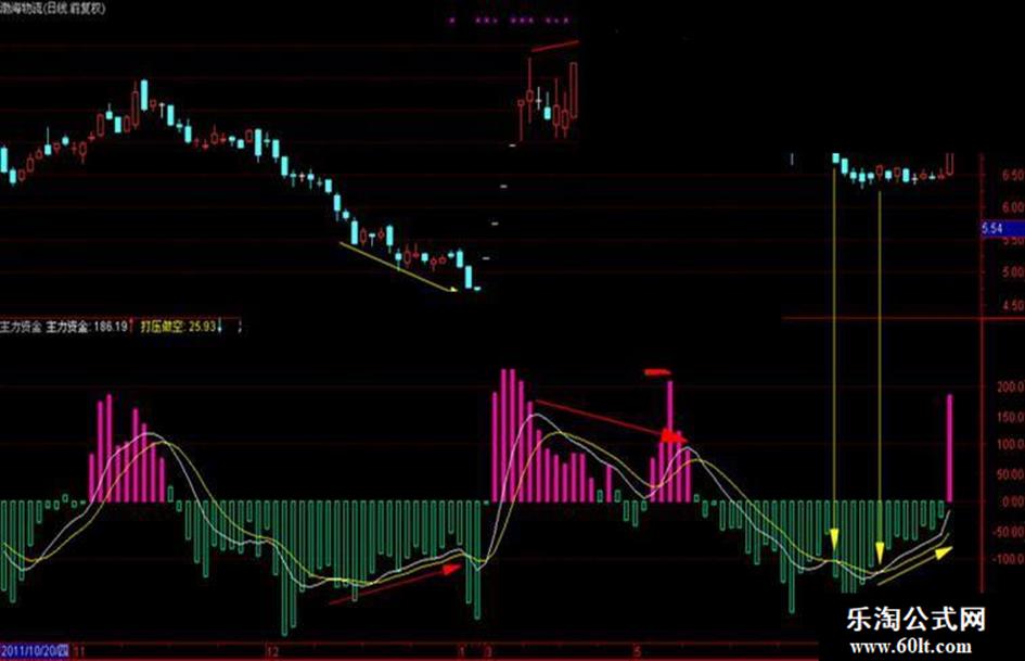 STICKLINE(主力资金<打压做空,0,主力资金,1,1),COLOR99FF00;