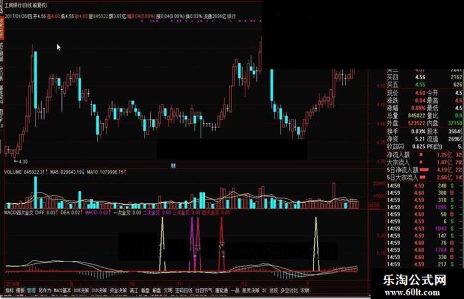 四次金:=CROSS(DIFF,DEA) AND DEA<0 AND COUNT(JCCOUNT=4,5)=1;