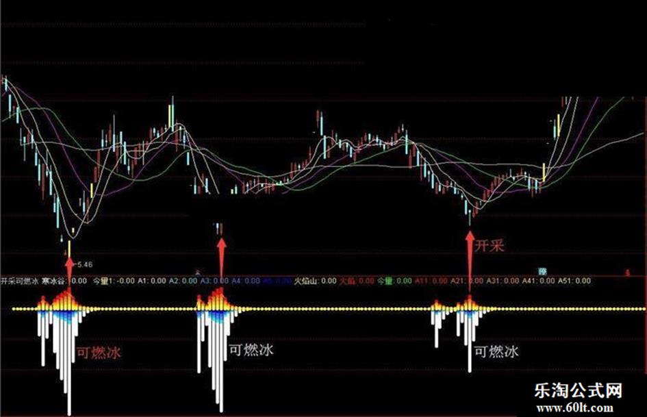 在大海的沉积层或大陆的永久冻土中,由天然气与水在高压低温条件下形成的类冰状的结晶物质,其外观是固体的,像冰一样,而且遇火即可燃烧,所以称作可燃冰。可燃冰的储量非常大,燃烧污染非常小,是一种清洁能源。 股市也有一种能量,长期积聚在部分股票中,得不到燃火和喷发。一旦燃火起来,火势较大。有时蔓延开来,有时持续燃烧着,有时火光冲天惊天动地。开采可燃冰指标,就是一个发现和开采股市可燃冰的通达信副图指标。 下面分享开采可燃冰指标,并在几张贴图中给大家介绍开采可燃冰指标的基本用法和技巧。