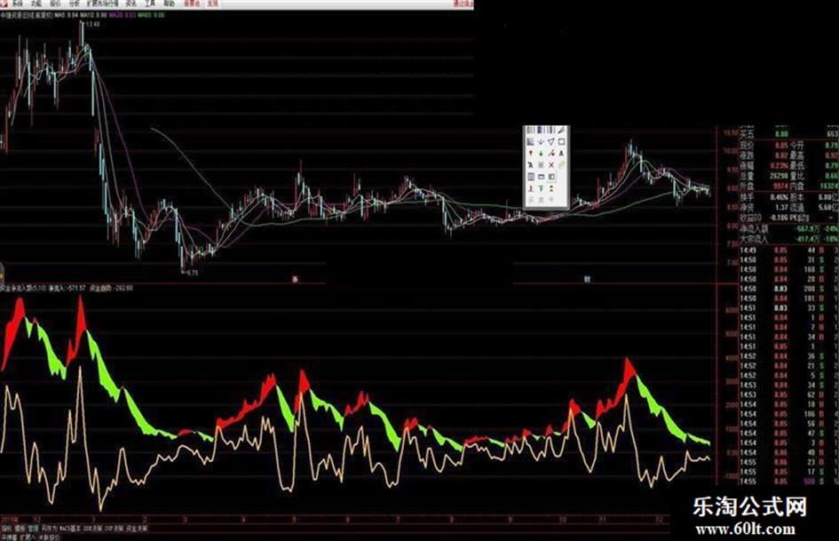 资金变化:DRAWBAND(资金1,RGB(255,0,0),资金2,RGB(127,255,0));