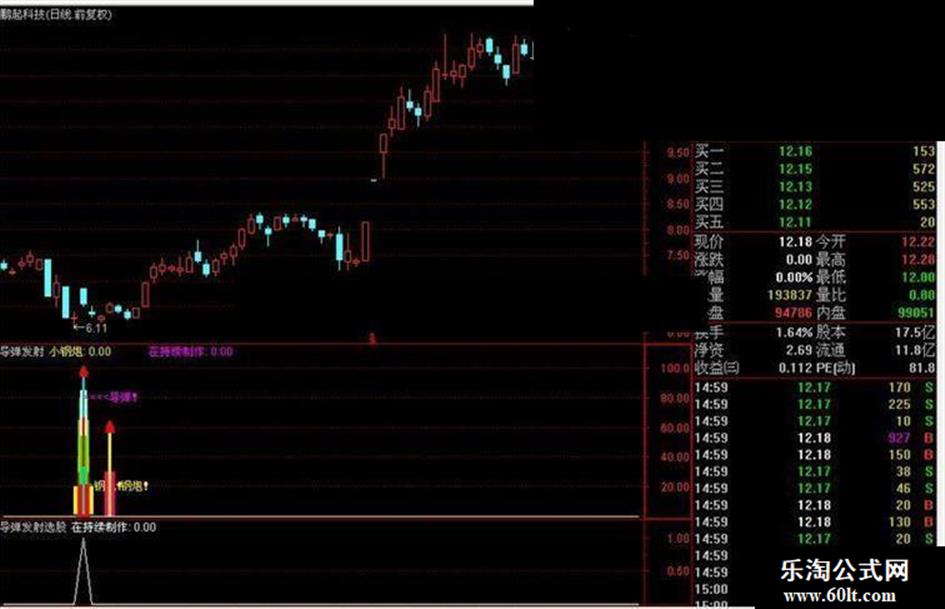 导弹发射,决胜千里的出现,代表着庄家资金运作留下的轨迹。就是利用时间操盘成本而运算得出的结果。所以说,出现导弹发射,逻辑函数可认定为是主力所为。不过还要结合该股基本面等诸多条件的综合感悟,其实赚钱并不是一定要买在最低点(根本买不到),买到了也是你瞎B蒙的!确切的说买股要买在转折点!指标加密采用无限永久使用,也是对自己一种权益的体现,希望大家谅解!