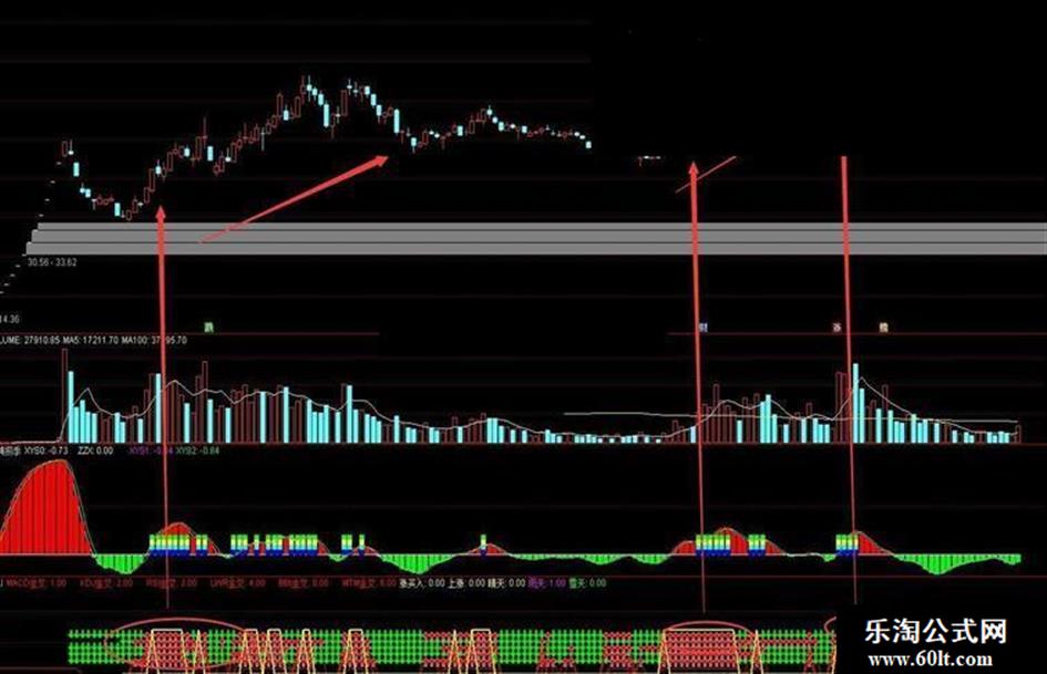 涨买入:IF((A1 AND A2 AND A3 AND A4 AND A5 AND A6) AND REF(A1 AND A2 AND A3 AND A4 AND A5 AND A6,1)=0,7,0),COLORYELLOW,LINETHICK2;