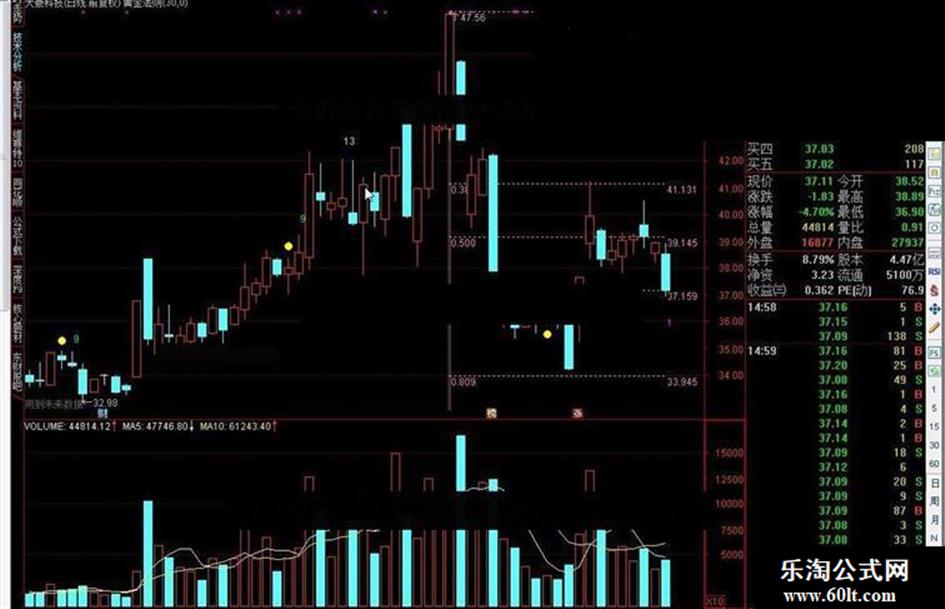 NOTEXT测顶:IF(K=1,DRAWLINE(X_81=1 AND REF(X_81,1)=0,X_78,ISLASTBAR,REF(CLOSE,X_80)*REF(CLOSE,X_80)/REF(CLOSE,X_80+1)/0.9,(-2)),DRAWNULL),DOTLINE,COLORYELLOW;