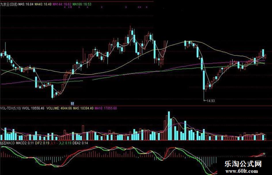 个指标大家应该很熟悉 金钻区的MACD指标 比普通MACD更敏感 金叉更早 还有换手率彩柱工具 两个工具一起用 分析主力动态找寻最佳买卖点