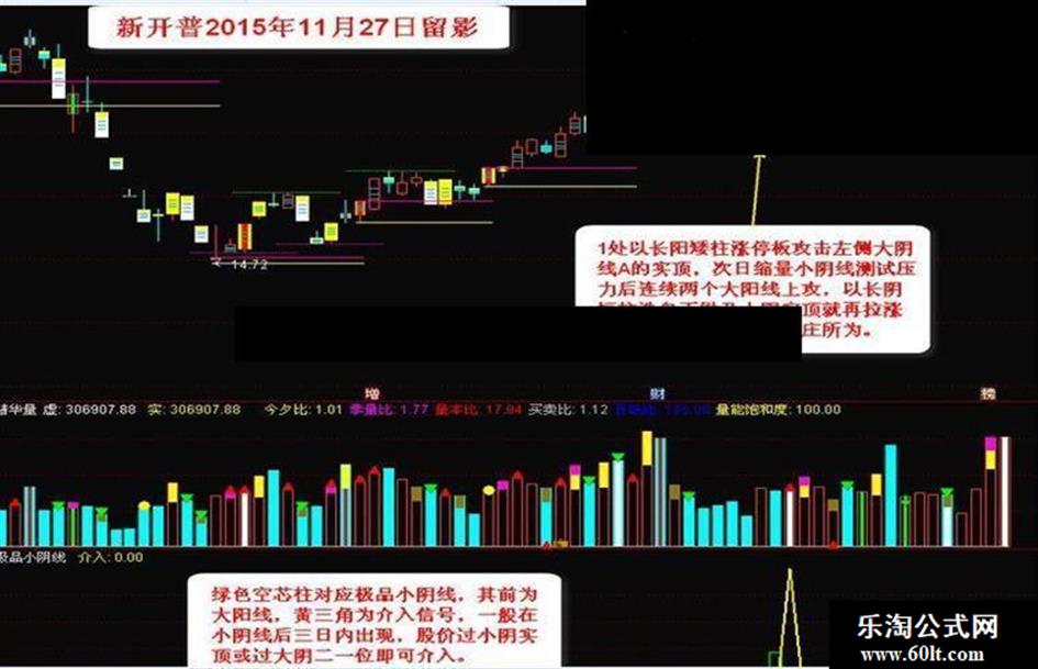 下面介绍一种极品小阴线(副图上用空心阴柱标志)战法,它类似于王子老师发明的“悬阴三一”战法。