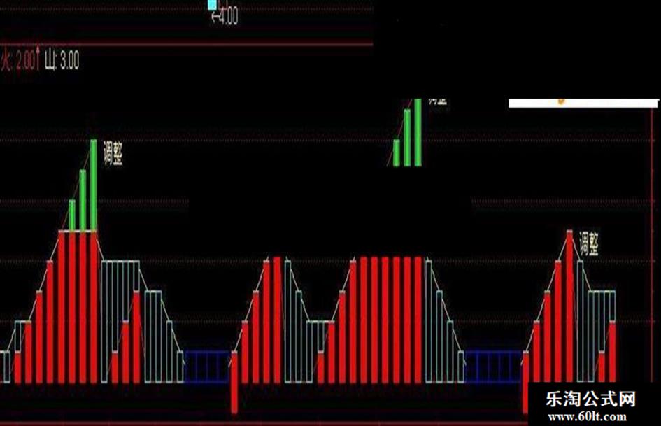 DRAWTEXT(REF(火,3)>0 AND REF(火,2)>0 AND REF(火,1)>0 AND 火=0 AND REF(火,1)>山,REF(火,1),'调整'),COLORYELLOW , ;