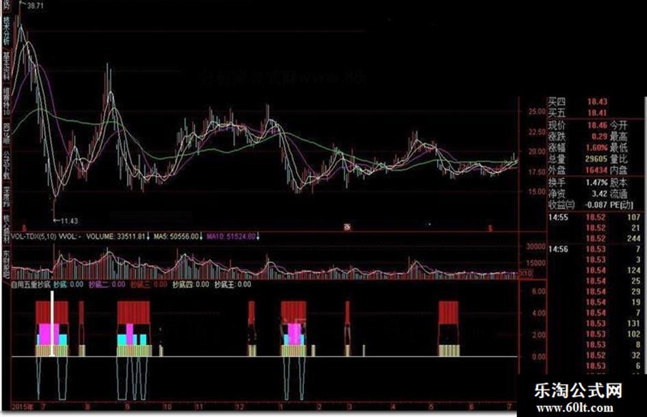 抄底二:IF(乖离<-18,3,0),COLORFF35FF,LINETHICK1;