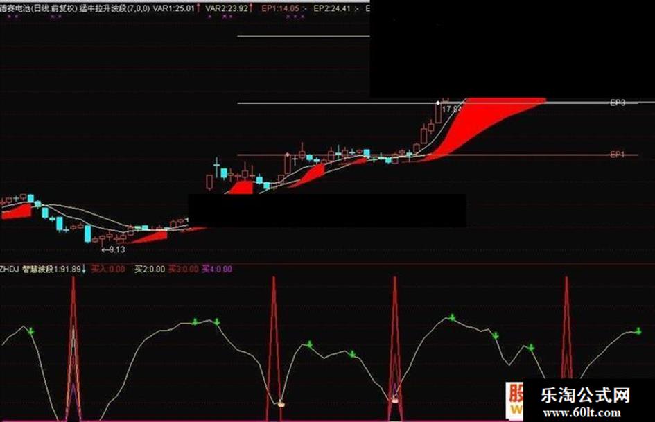 短线买点:=IF(SS>13,MA(SS,2),SS);