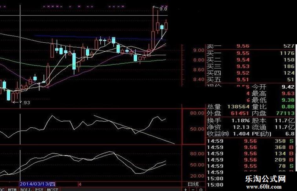 压二:=DRAWLINE(S3,RSI,S2,RSI,1),COLOR009AFF; {压力2}