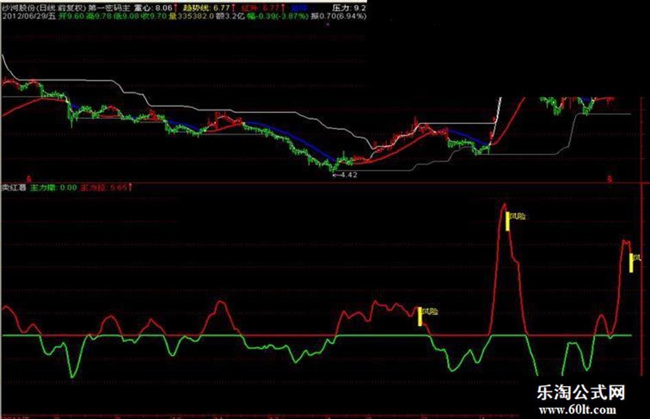 DRAWTEXT(趋势线>=75 AND CROSS(JIA,V4),V4+2,' 风险'),COLOR00FFFF;