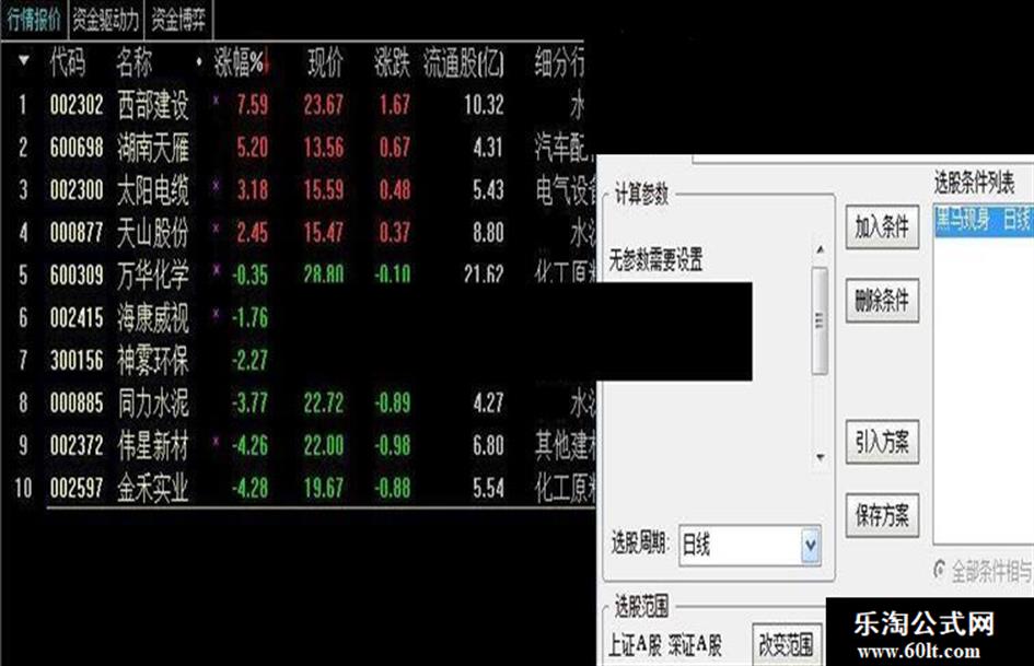 黑马现身是我常用的副图,是我的原创,经过无数次的测试修改,成功率很高,
