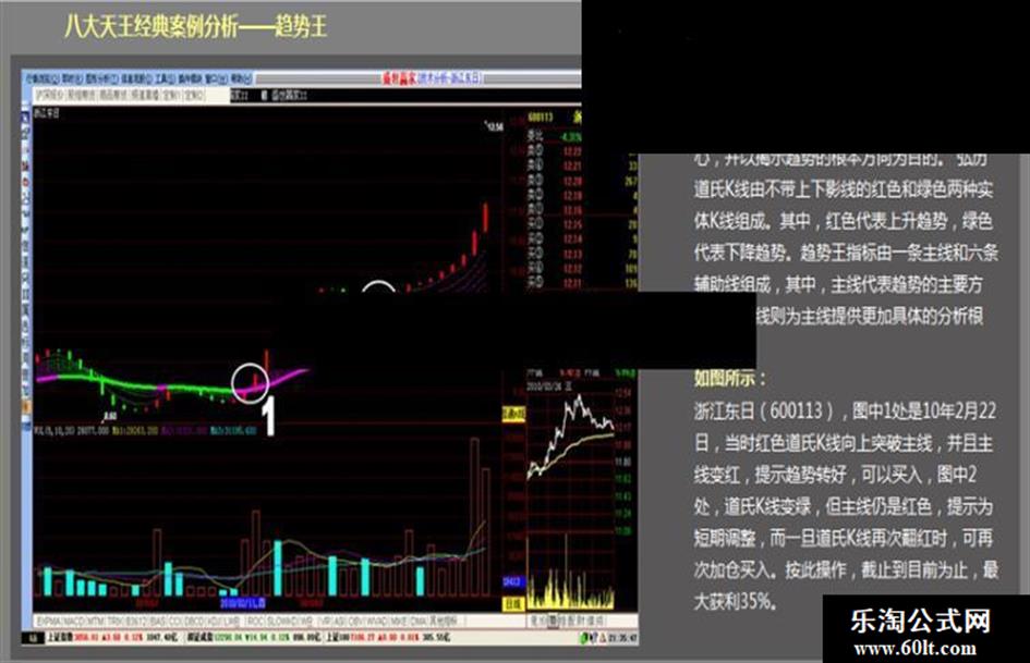 趋势王不论从那个角度来将,都展现了一种别出心裁的设计。它不但把大级别的趋势明确的展现出来,而且把小级别的次要趋势也能在图表中完全展现。从另一个角度说,只要有趋势王这个交易系统,你不但可以做中长线,而且可以做波段,所有级别买卖一览无余。