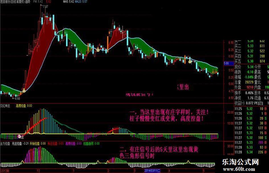 有庄控盘:IF(控盘>REF(控盘,1) AND 控盘>0,控盘,0),COLORRED,LINETHICK1;