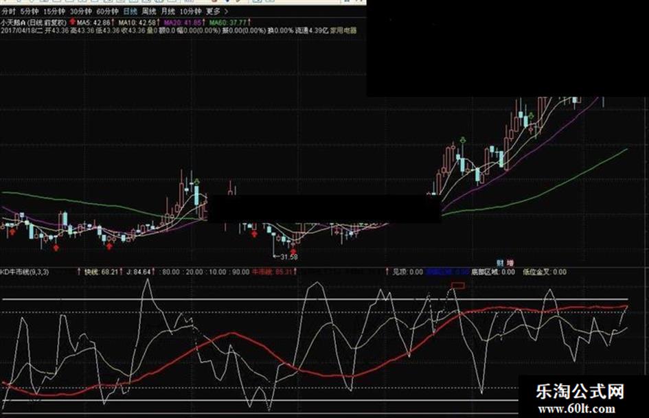 这是一个观察大方向大趋势的指标,用红色牛线叠加了KDJ指标更加直观,使用心得方面,个人感觉:当周线与日线的红色牛线指标向上时,KDJ金叉买入成功的机率较高。相反,当周线与日线红色牛线指标向下时,KDJ死叉卖出的止损止盈成功率较高。