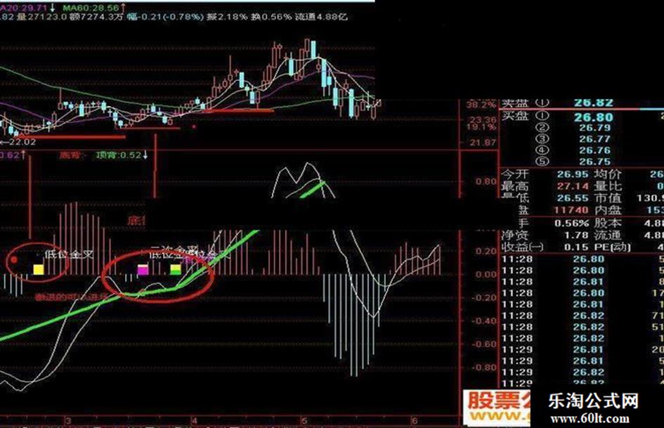底背离:=REF(CLOSE,A1+1)>CLOSE AND DIFF>REF(DIFF,A1+1) AND CROSS(DIFF,DEA);