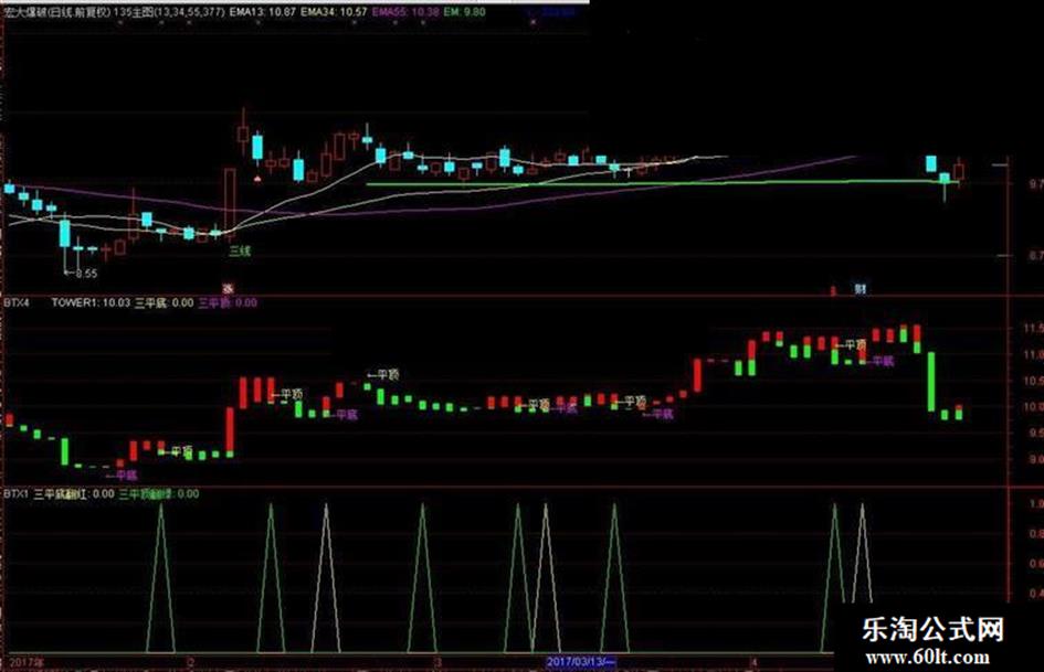 三平底:COUNT(TOWER2=REF(TOWER2,1),2)=2 AND VAR19,NODRAW;