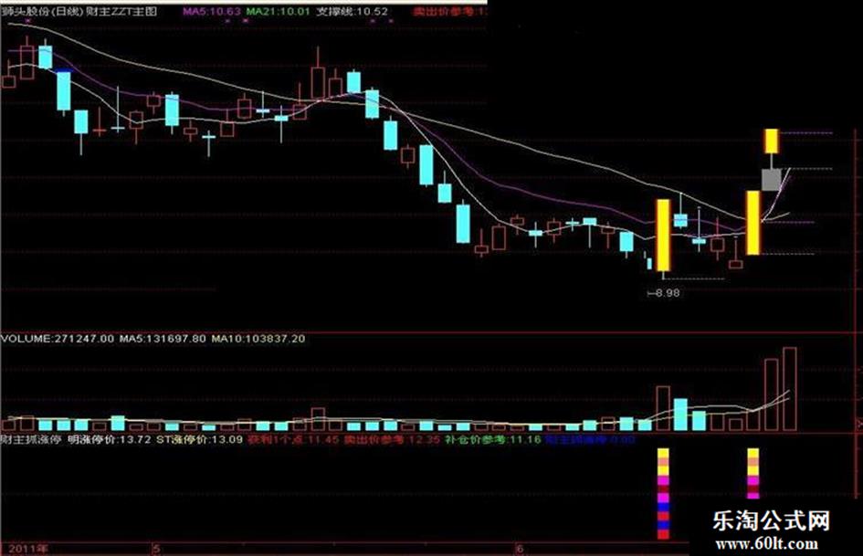 财主抓涨停骑黑马指标,一主图和一副图公式