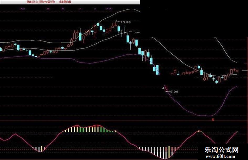 WL:=(HHV(H,8)-C)/(HHV(H,8)-LLV(L,8))*100-70; MWL:=SMA(WL,8,1); RSV:=(C-LLV(L,8))/(HHV(H,8)-LLV(L,8))*100; K:=SMA(RSV,3,1); D:=SMA(K,3,1); DKC:=(D+100)-(MWL+100); GL:=((C-MA(C,6))/MA(C,6)*200)+20,COLORGREEN; A:DKC/2,COLORLIMAGENTA,LINETHICK2; 涔扮偣:REF(A<20,1)AND A>REF(A,1)AND CROSS(GL,19.5),COLORYELLOW,NODRAW; 浣庝綅:A<20,COLORLIGRAY,NODRAW; 楂樹綅:A>50,COLORYELLOW,NODRAW; 10,COLORGRAY,DOTLINE; 20,COLORGRAY,DOTLINE; 50,COLORBROWN,DOTLINE; 15,COLORRED,DOTLINE; STICKLINE(A>50,50,A,0.1,0),COLORYELLOW; STICKLINE(A>50 AND A<REF(A,1),50,A,0.1,0),COLORGREEN; STICKLINE(A>60,60,A,0.1,0),COLORRED; STICKLINE(A<20,20,A,0.1,0),COLORLIGRAY; STICKLINE(A<20 AND A>REF(A,1),20,A,0.1,0),COLORLIRED; STICKLINE(A<10,10,A,0.1,0),COLORWHITE; STICKLINE(涔扮偣=1,22,A,0.1,0),COLORYELLOW;