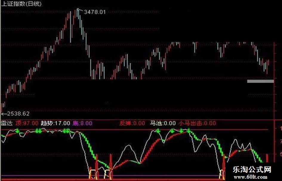 小马出击: IF(CROSS(趋势,底),50,0),COLOR0000FF,LINETHICK2;