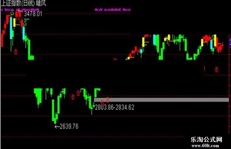 STICKLINE(买线<卖线,LOW,HIGH,0,0),COLOR00FF00;