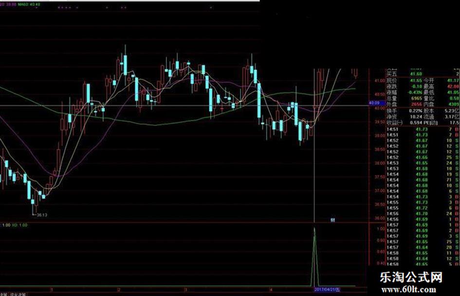 XA_41:=BARSLAST(REF(XA_35,1)<REF(XA_36,1) AND XA_35>XA_36)<=2 AND BARSLAST(CROSS(XA_37,XA_38))<=5 AND BARSLAST(XA_32>REF(XA_32,1))<=20;