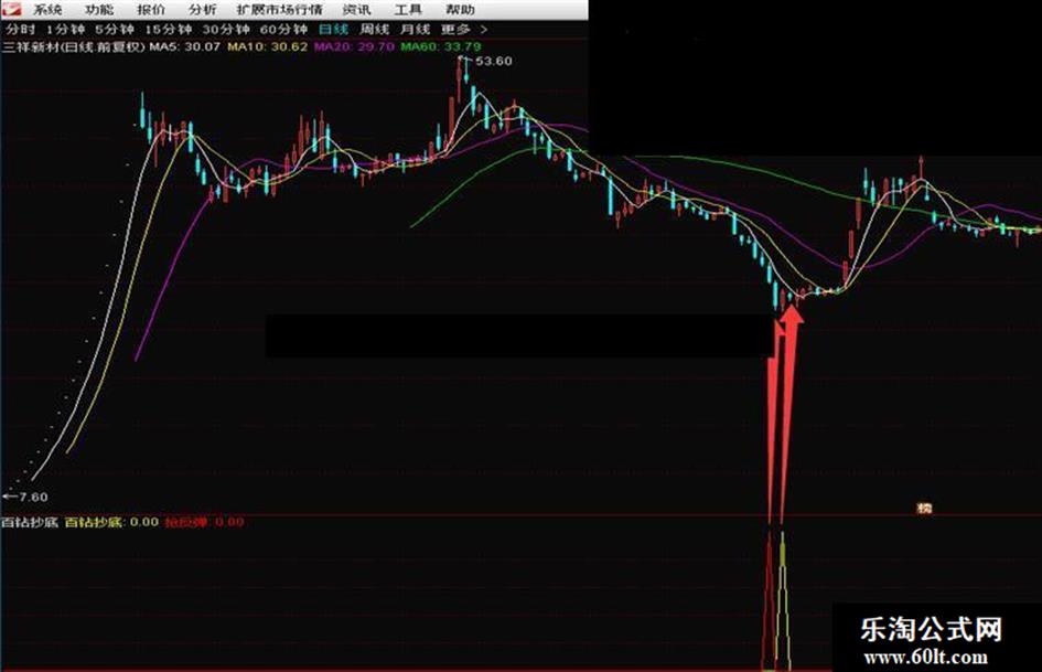 抢反弹:BB1=1 AND C=LLV(C,10) AND C<L*1.045 AND V<HHV(V,10) AND C>LC*0.9015,COLORRED;