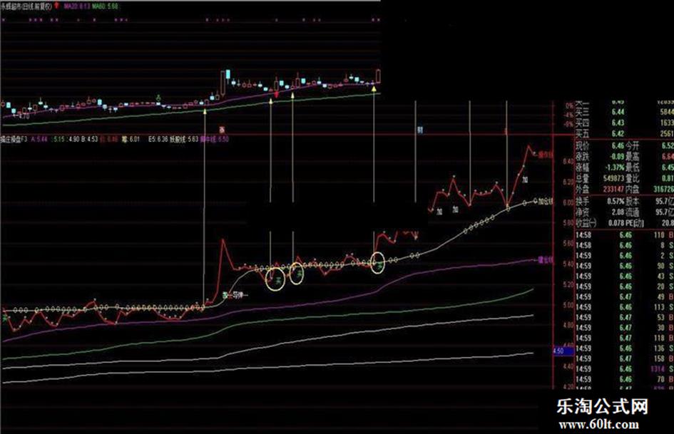 DRAWTEXT( VOL/CAPITAL<0.007,筹,'O' ),COLORYELLOW;